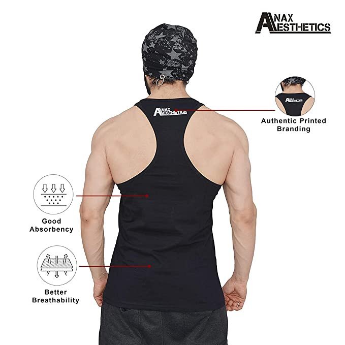 COMFORTABLE & STYLISH: – TRAINING TO GO SUPER SAIYAN print on the front and ANAX AESTHETICS brand logo on the upper back on the stringer. The stringer has a low sleeve cut and is light, comfortable and stylish.
