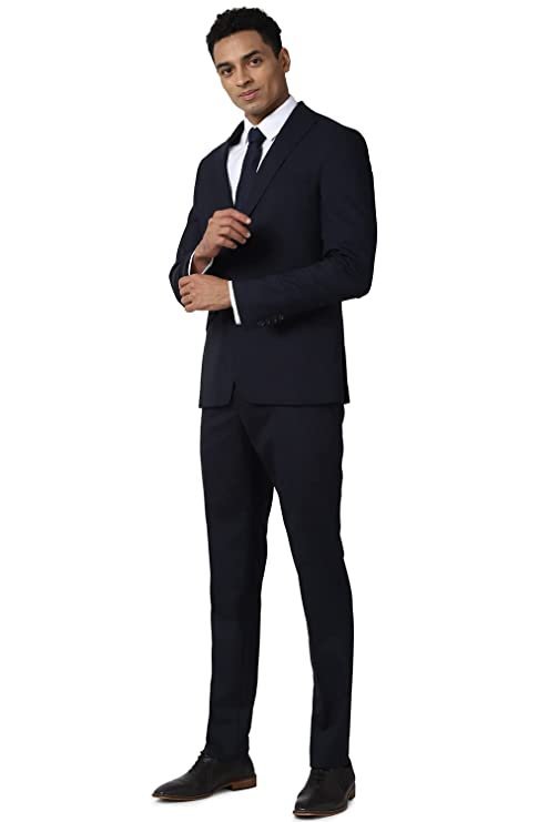 Look sharp and make an impact in this Navy Check two-piece suit from Peter England Elite by Peter England. Cut in a streamlined Slim Fit , this suit promises maximum comfort and style.
