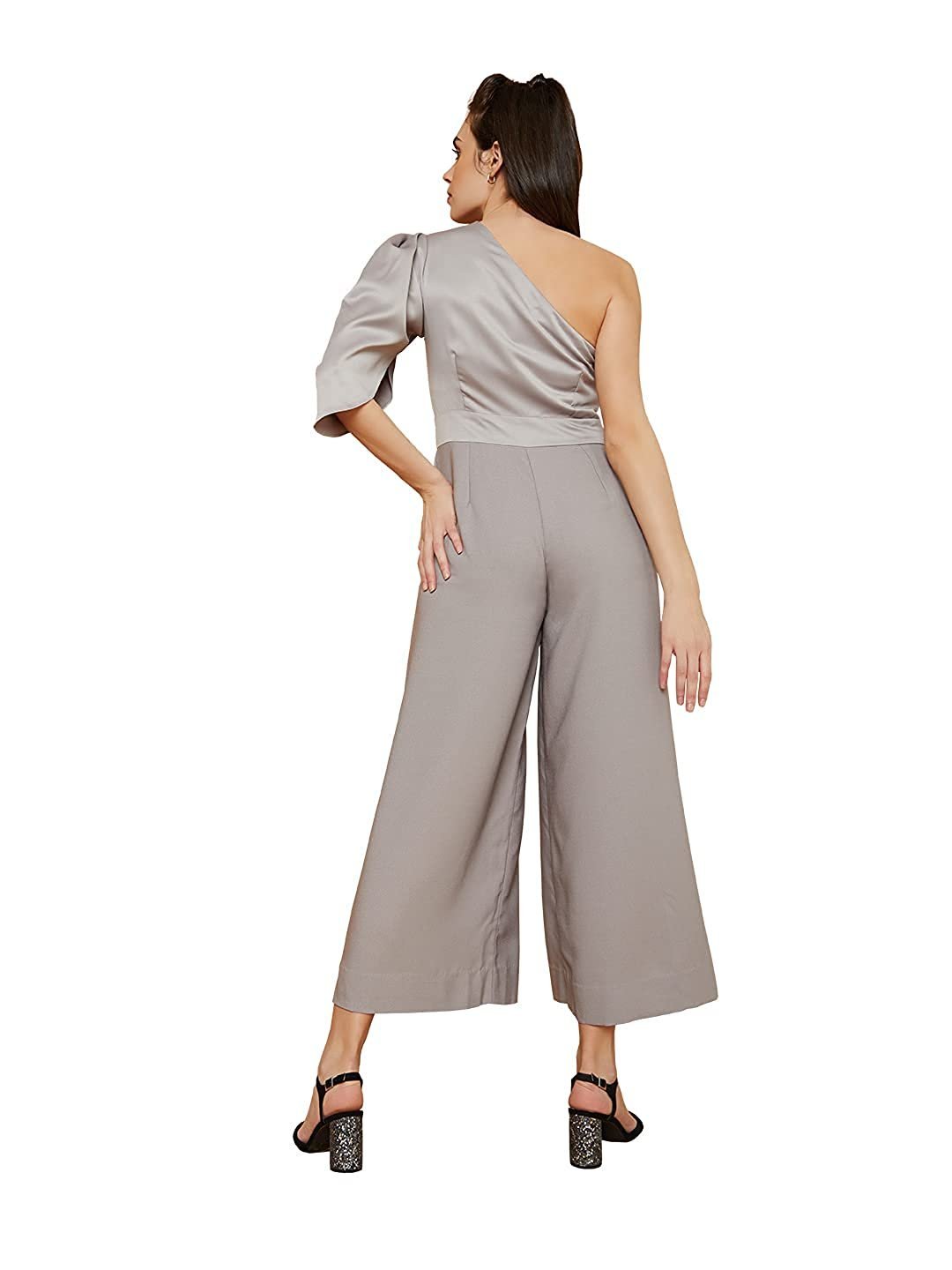 Vero Moda பெண்களுக்கான 100% பாலியஸ்டர் சாலிட் அரை ஸ்லீவ் ஒரு தோள்பட்டை ஸ்லிம் ஃபிட் ஜம்ப்சூட்