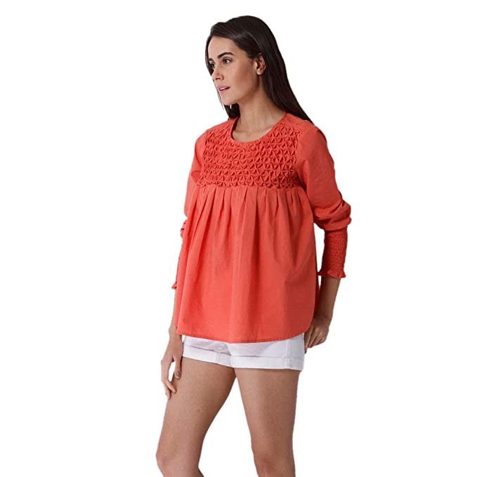 VERO MODA Women cotton plain slim fit red top.
