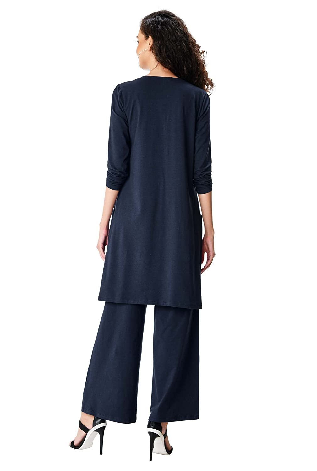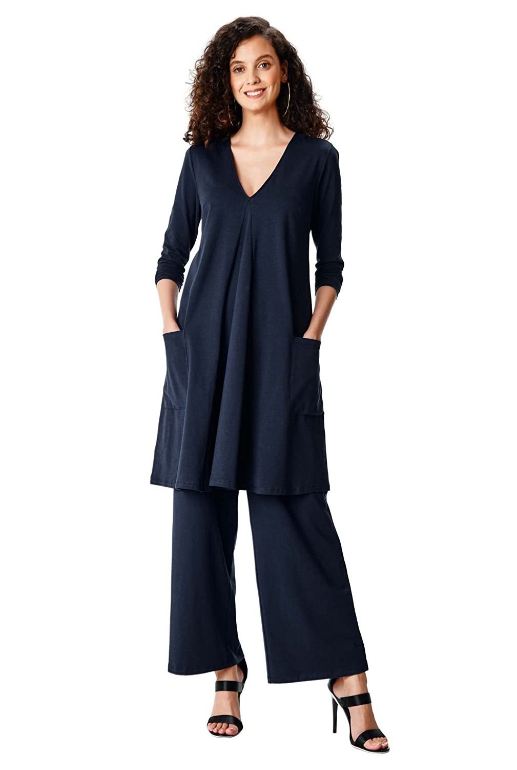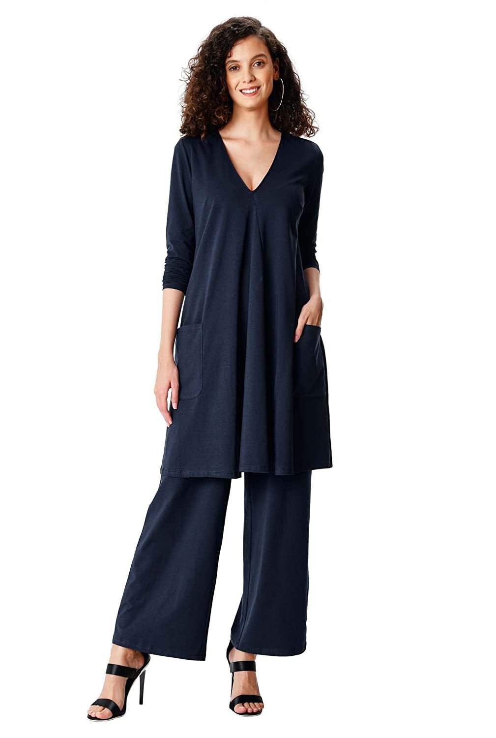A trapeze hemline enhances the subtly relaxed appeal of our cotton knit long-length tunic coordinated with wide-leg pants for a complete set.TUNIC