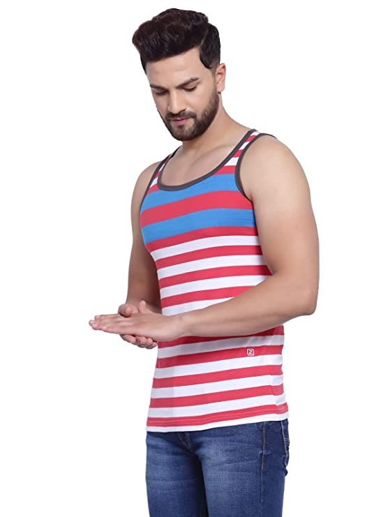 ALL-DAY COMFORT: Zoiro Trends Cotton Striped Singlet is thoughtfully tailored to provide maximum mobility and comfort to your upper body throughout the day